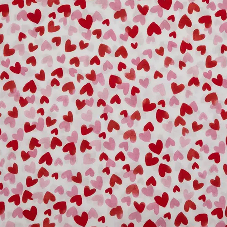 Part of our Valentine's Collection, 'Rhea' is white with tiny small pink and red hearts throughout the fabric. These scrunchies add a lovely, feminine flair to any updo! Crafted with a wider elastic for extra hold, they’re both stylish and functional, making them an ideal gift. Each scrunchie is about 4 inches in diameter.
