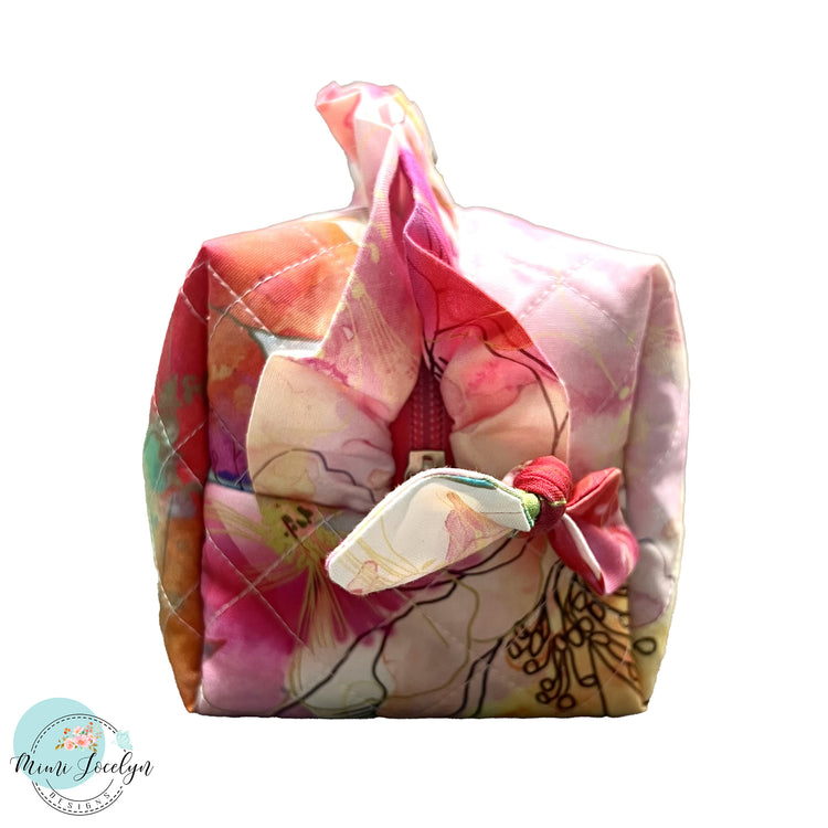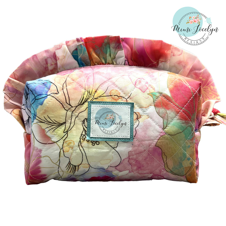 Elevate your beauty routine with our selection of vibrant, fun, & beautiful fabrics that have been quilted for durability & longevity, complete with playful ruffle detailing and matching fabric zipper tie.
