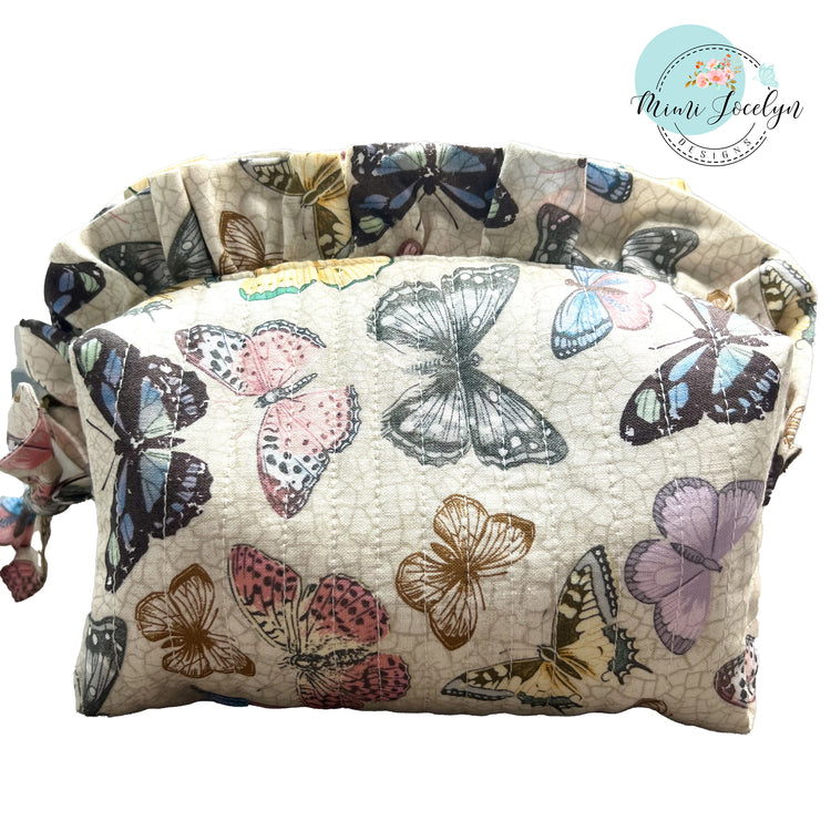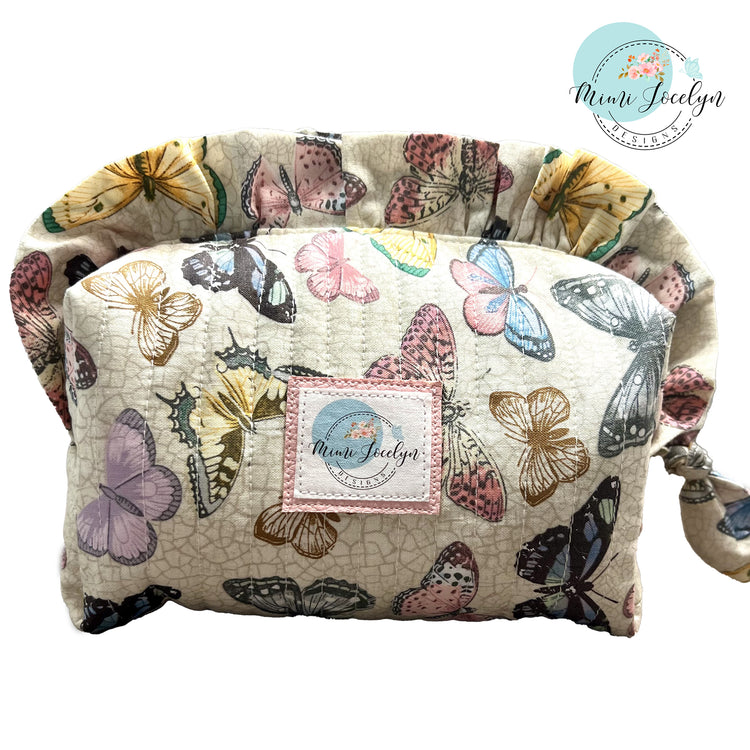 Elevate your beauty routine with our selection of vibrant, fun, & beautiful fabrics that have been quilted for durability & longevity, complete with playful ruffle detailing and matching fabric zipper tie.