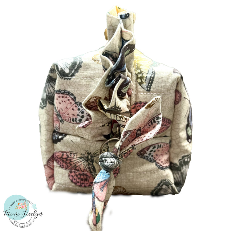 The interior features a fun & coordinating fabric lining, enhancing the bag’s elegance and femininity with every use. Its spacious design accommodates all your makeup essentials and toiletries, making it a practical and stylish accessory for both everyday use and travel.