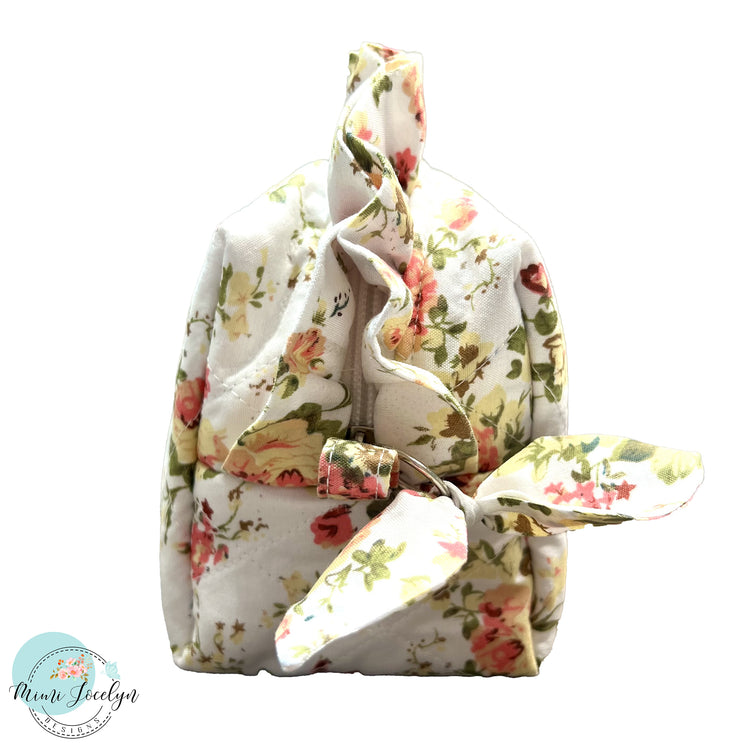 Elevate your beauty routine with our selection of vibrant, fun, & beautiful fabrics that have been quilted for durability & longevity, complete with playful ruffle detailing and matching fabric zipper tie.