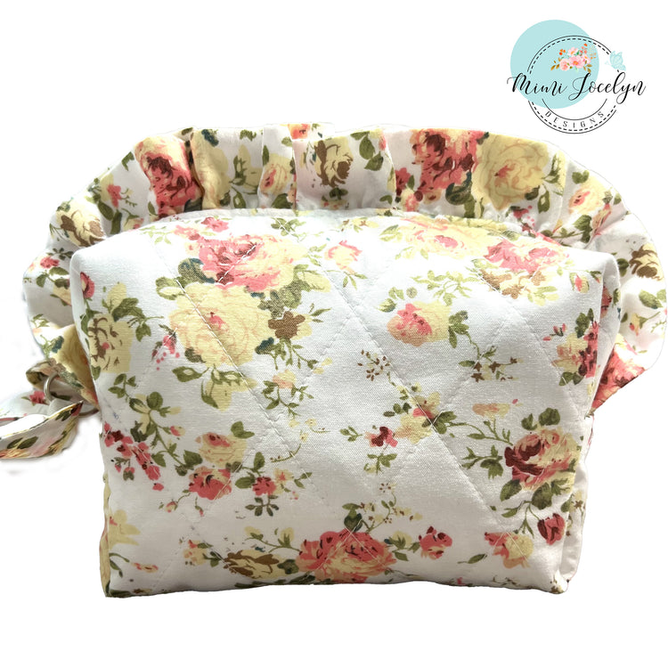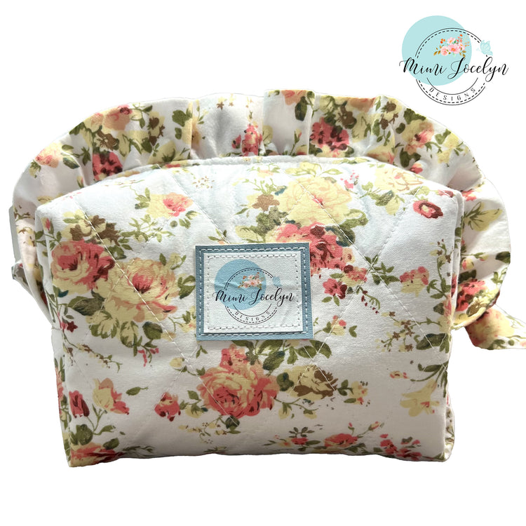 Add a touch of sophistication and charm to your daily essentials with our beautifully quilted ruffle makeup bags! These pouches are ideal for organizing cosmetics, toiletries, craft supplies, or small personal items with style and elegance.